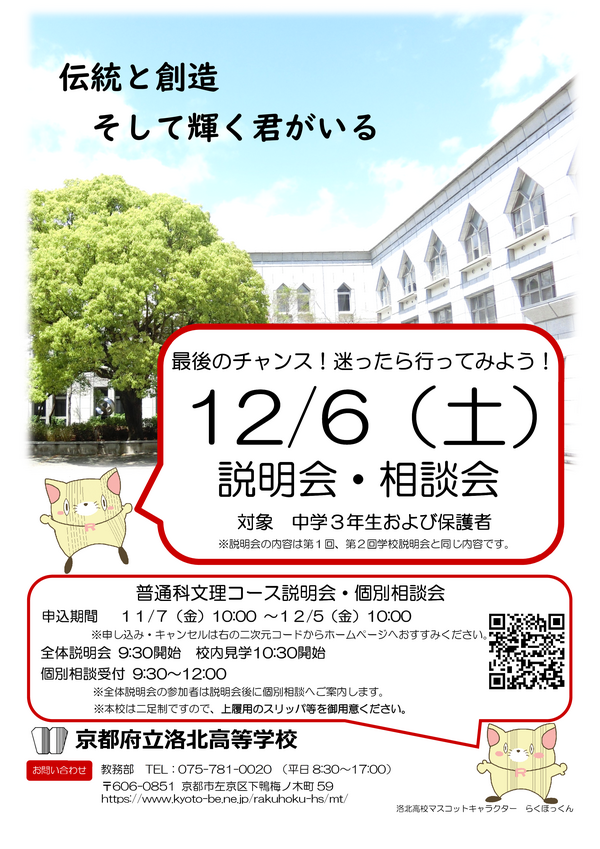 お問合わせ 洛北高校 教務部(平日 8:30~17:00)