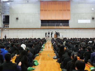 最後に、各分掌部長からの話があり、その中で本校のサイエンスチャレンジ等に積極的に参加した生徒の表彰も行いました。分掌部長からの話にもあったように、生徒の皆さんには春休み中も学習習慣をしっかり維持し、目標に向かって行動し続けてほしいと願っています。新年度、成長した姿で皆さんに会えることを教職員一同楽しみにしています。