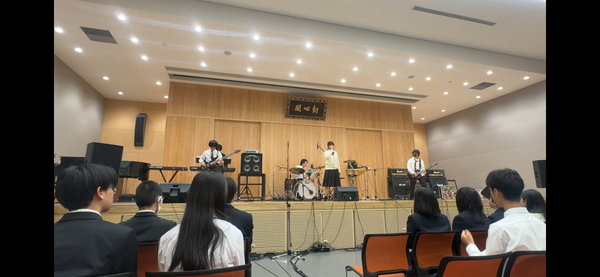4月29日(火・祝日)大谷高校で行われた楽器の選び方講座において、新入生歓迎ライブとして、演奏しました。洛北高校以外の高校生を交えた演奏会は23年生にとっては初めてでしたが、他校の軽音楽部の演奏を聴くことができ、大きな刺激となりました。