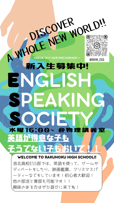 AETの先生方を囲んで英語で楽しく交流しています。ディベートやゲーム、季節ごとにイースターやハロウィン、クリスマスなど異文化体験のイベントをして自然に英語を話すことを楽しんでいます。ESS部員だったから英語が話せるようになったという先輩もたくさんいます。AETの先生方と仲良くなれるのもメリットです!
