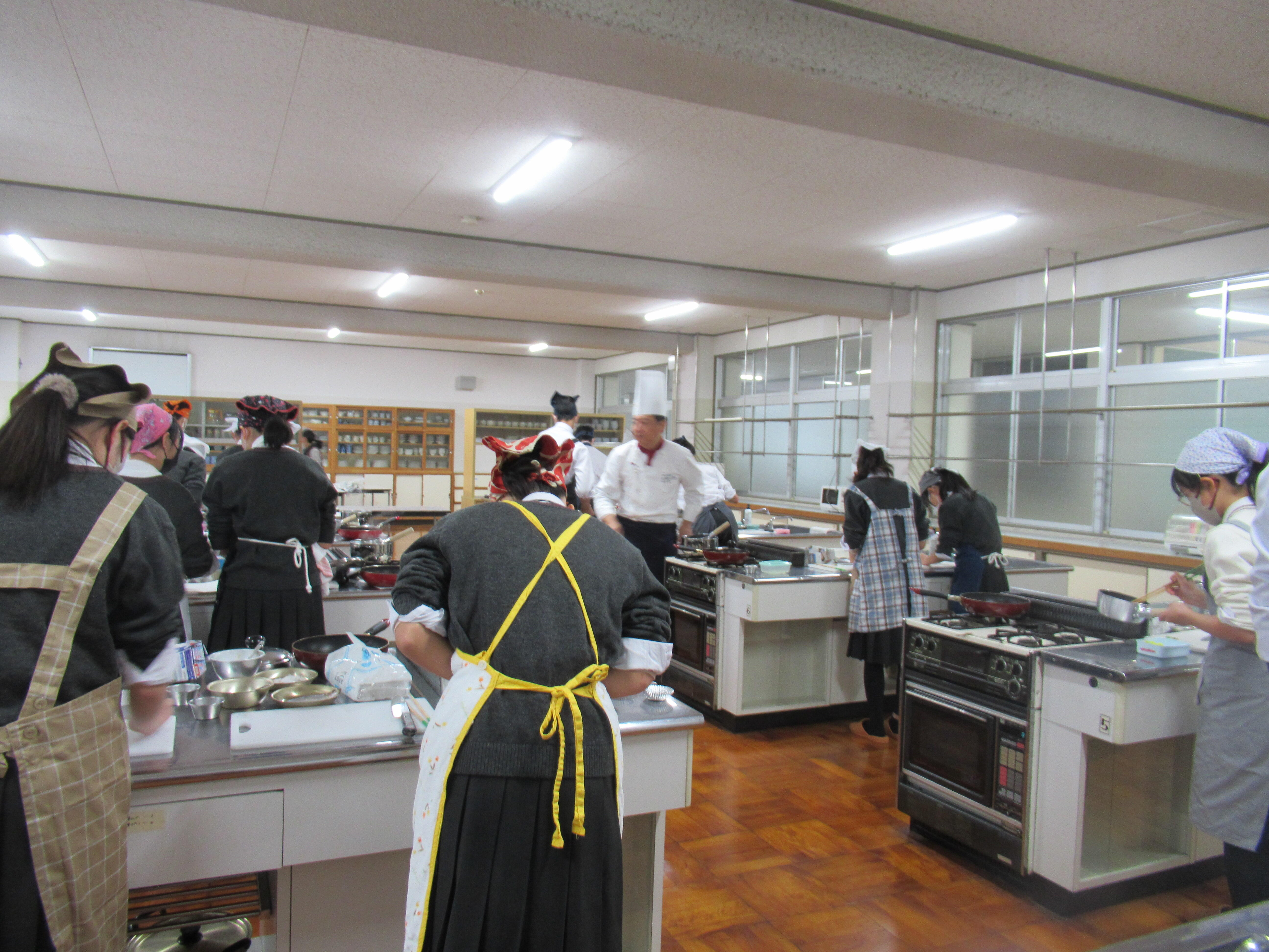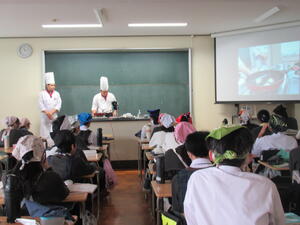 初めに、辻学園 調理・製菓専門学校 阪本健一教授から調理の仕方(デモンストレーション)と美味しくできるコツを学び、その後、各自が調理に取り組みました。調理から後片付けまで1人で行う「ひとりクッキング」です。