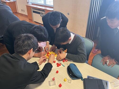 イマジナリーキューブパズルを解くこと、その数学的な証明を考えました。昨年に引き続き講義をしていただき、フラクタル立体についての考えを深めることができました。