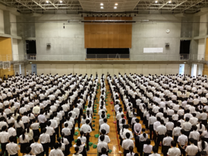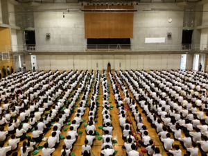 始業式では全校で集まり、校長先生からのお話を聞きました。
