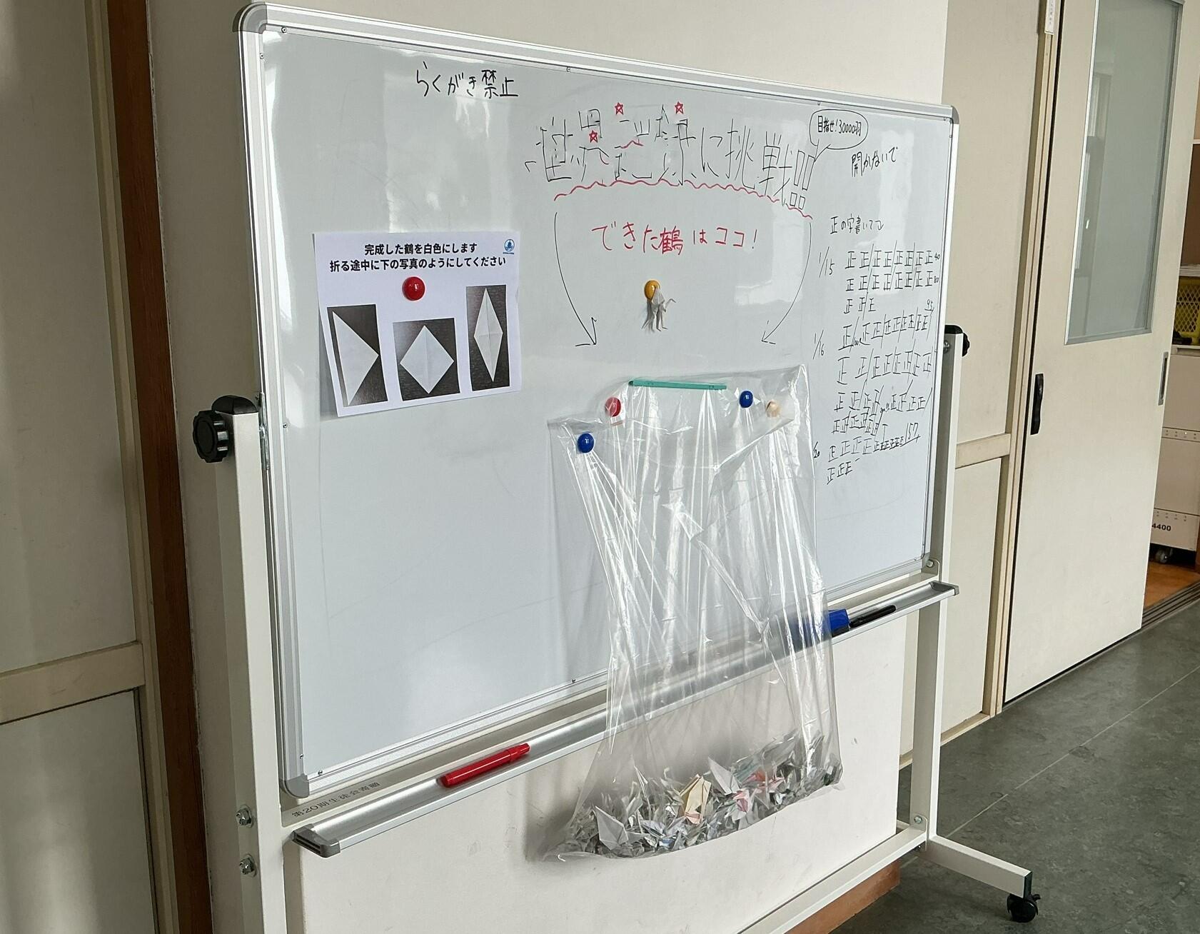 中学2年生では生徒会本部が主体となり「折り鶴30,000羽を折って文字を作る」という企画に挑戦中です。