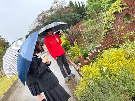 10月31日(金)、高1文理コースの約160人が京都府立植物園でフィールドワークを行いました。この日のために、班ごとに観察したいポイントを事前にまとめ、しっかりと準備をして臨みました。当日はあいにくの雨でしたが、職員の方々のご厚意で、普段は入ることのできないバックヤードも見学させていただき、貴重な体験をすることができました。傘を差し、寒さに耐えながらも熱心に観察を続ける生徒たちの姿がとても印象的でした。フィールドワークは天候に大きく左右されますが、今回の経験を通して、天候不良の中でもどのようにリカバーするかという点でも、多くを学ぶ機会となりました。植物の観察だけでなく、状況に応じた柔軟な対応力を養う貴重な一日となりました。