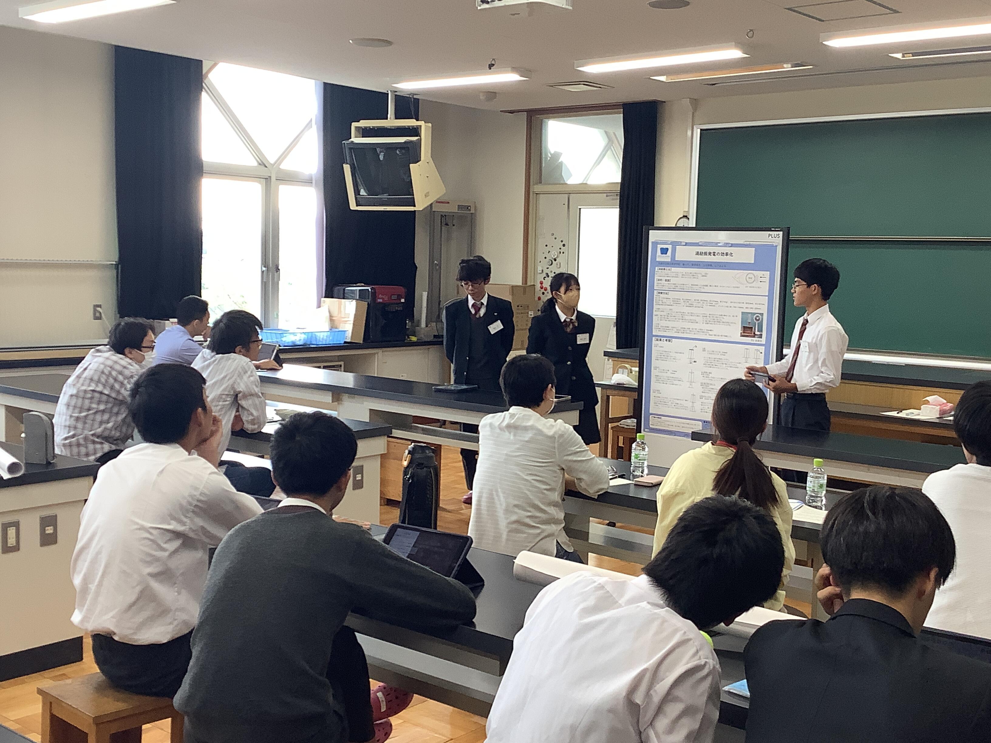 10月17日・24日、そして11月7日の課題探究の授業時間に、大学教員・研究員・大学院生をお招きし、課題研究の中間発表である「アドバンスセミナー」を実施しました。発表の中には研究途上のものもありましたが、参加者から多くの質問や助言をいただき、生徒自身も質疑応答を通じて活発なディスカッションを行うことができ、今後の研究に大いに役立つ機会となりました。参加者からは、「生徒の皆さんの自由な発想による研究課題を見ることができ、とても興味深く楽しい時間を過ごせました」や、「参加したTAの学生にとっても、高校生から良い刺激を受けました。今後の研究活動に期待しています」といった感想が寄せられました。