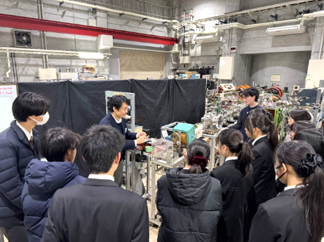 京都大学宇治キャンパス工学研究科を訪問しました。齋藤教授による放射線の仕組みや研究されている内容についての講義を受けたり、学部生・院生による光についての様々な実験(分光実験、混合実験、レーザー光の波長測定等)を行いました。最後に実際に研究で使用されているイオンビーム加速器施設を見学しました。普段では経験することのできない貴重な体験ができました。
