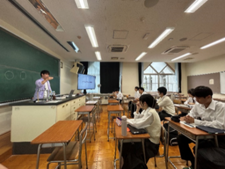 8月4日(月)、本校生徒4名が、公益財団法人テルモ生命科学振興財団の企画に参加し、生命科学分野の最前線で活躍する研究者の研究室を訪問しました。京都工芸繊維大学応用生物学系の東島研究室では、先生の講義の後、有精卵の胚発生を観察し、「しっぽ」に関するユニークな研究について学びました。研究室見学、実験、質疑応答など充実した内容で、生徒からは「興味のある分野への理解が深まった」「進路について考える良い機会になった」といった前向きな感想が寄せられました。