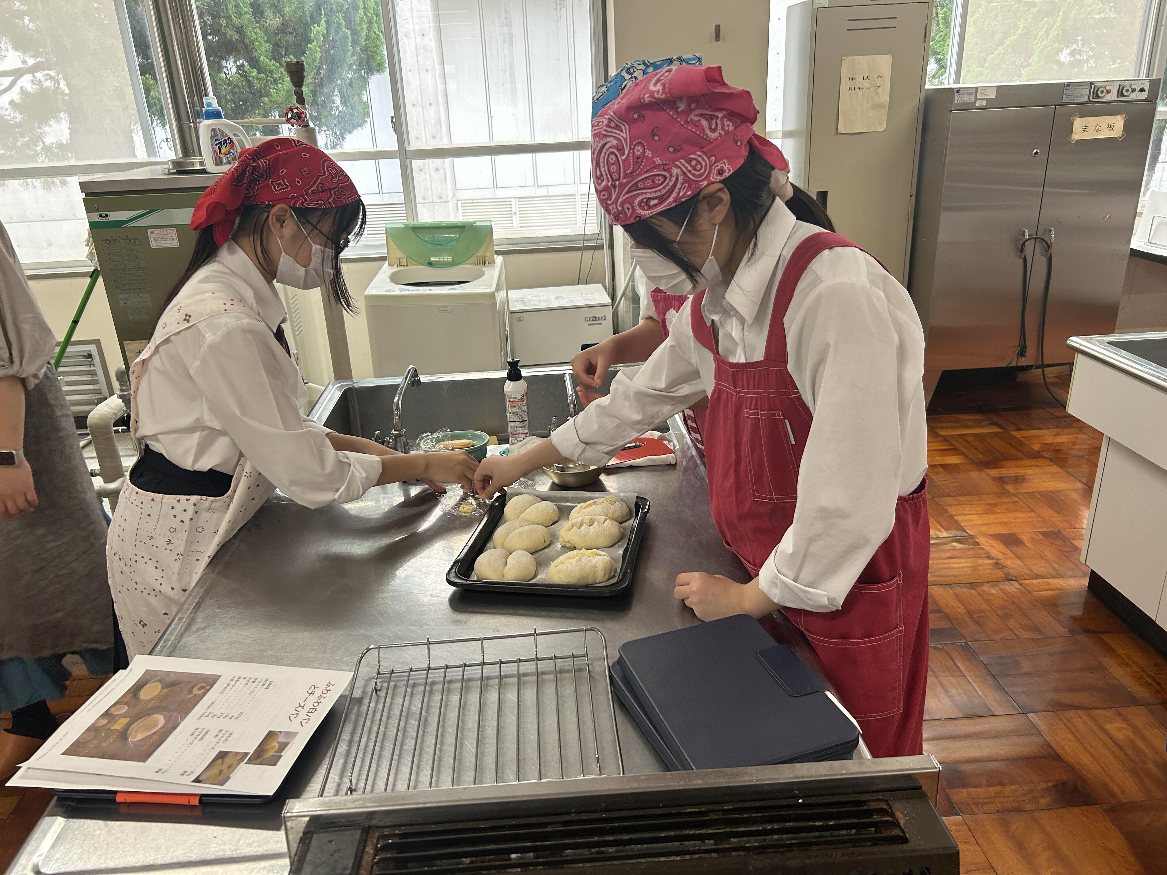 毎年「料理は原理を知るともっと楽しく上手に」をテーマに条件を変えながら、科学的に美味しく料理をつくる通年の企画です。パン教室を開いている小久保先生をお招きして、美味しい白パン&チーズパンを作りました。また、発酵、混ぜる順番、こね方、温度、材料などレシピにはそれぞれ科学的な意味があることも学んでもらいました。そこから、よりよいパンになるよう、材料や手順について科学的に考えながら、新しいアイデアをグループで考えてもらいました。次回は、立てた計画をもとにオリジナルのパンを作成してもらいます。