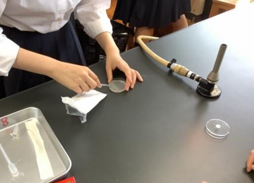 キャベツを培養してクローンを作る実験を行いました。クローンを作るには、材料の調整から殺菌、培養まで多くの工程があり、特に注意しないといけないのはカビや細菌による汚染(コンタミネーション)です。コンタミを防ぐために手や器具をその都度しっかりと殺菌しながら、作業を進めました。初めてクリーンベンチを使う人が多く、戸惑いも見られましたが、その中でも楽しみながら取り組む様子がうかがえました。うまくいけば、1-2週間したら培養した脇芽が動き出してきます。コンタミが出ないことを祈るばかりです。