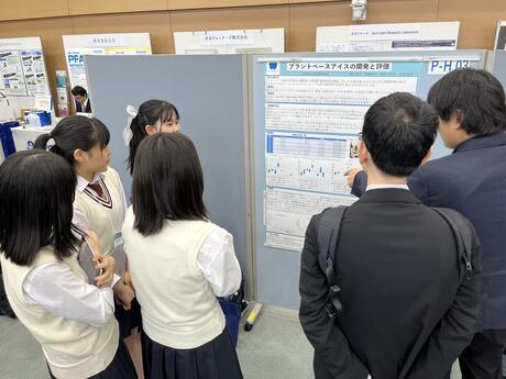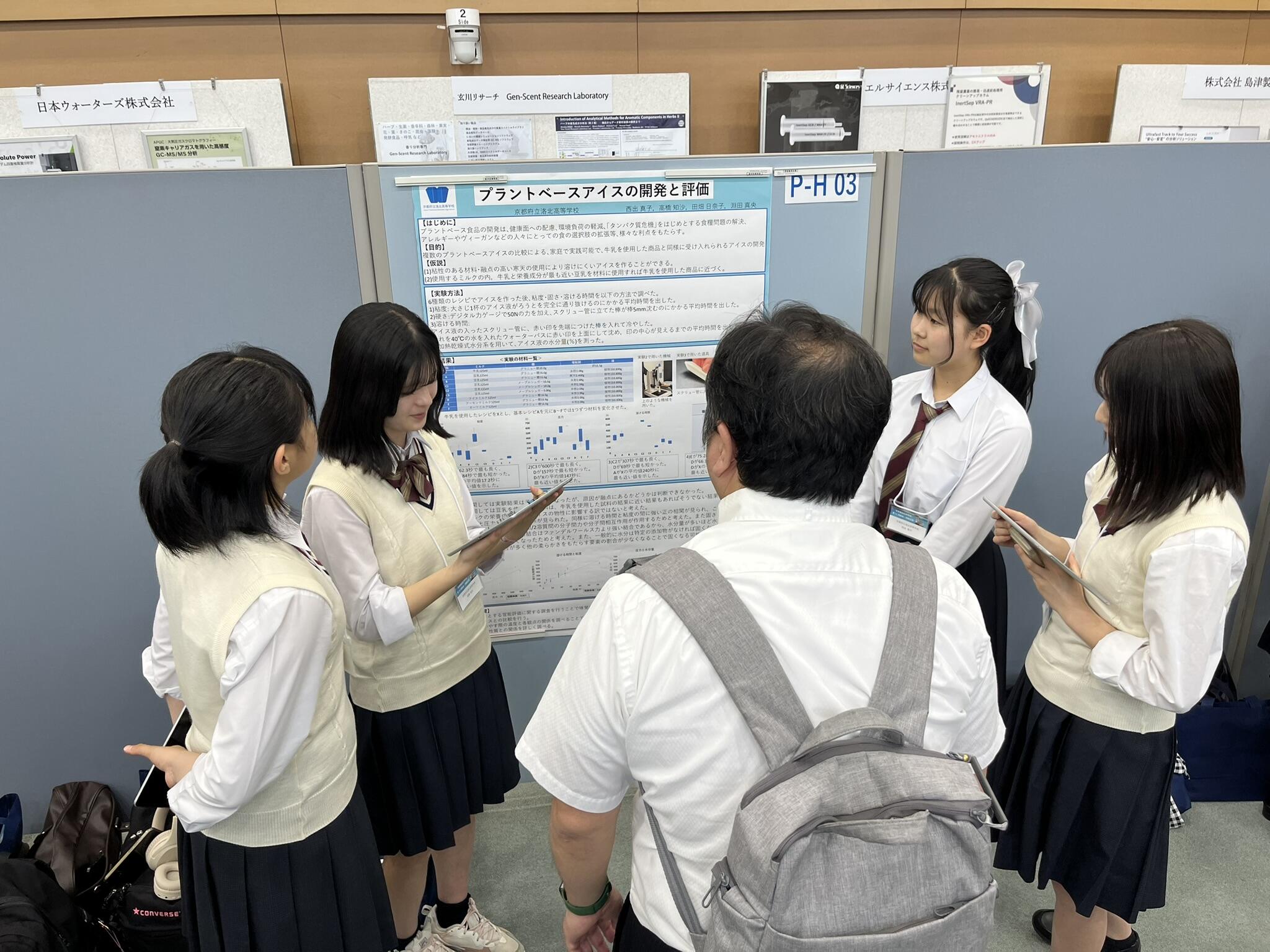 6月6日(金)に、立命館大学びわこ・くさつキャンパスにおいて開催された日本食品化学学会第31回総会・学術大会の高校生によるポスター発表に、昨年度の課題探究Ⅱ化学ゼミの「プラントベースアイスの開発と評価」のチームが参加しました。大学の先生方や企業の方々に対しても堂々と発表し、多くの学びを得ることができました。