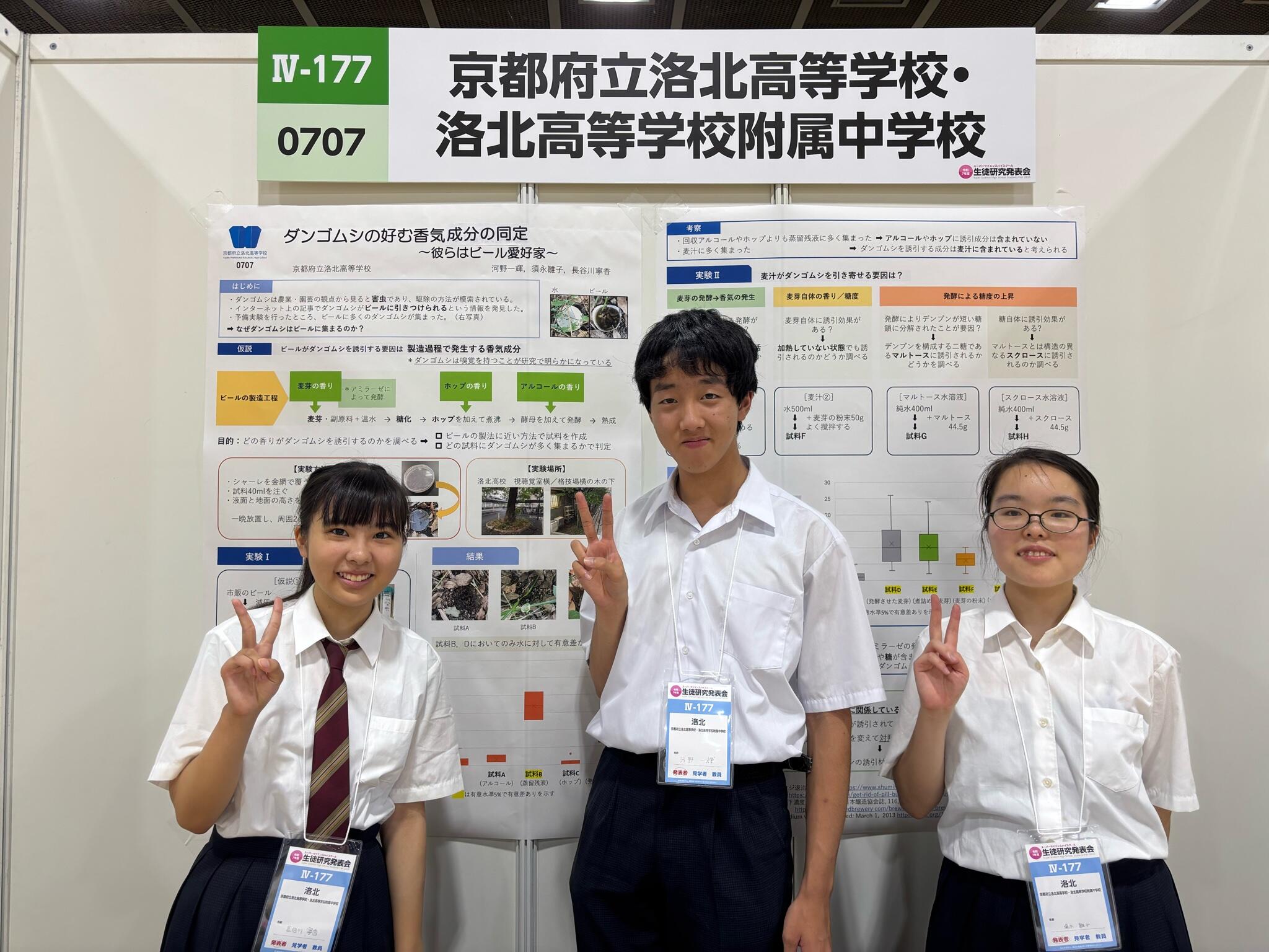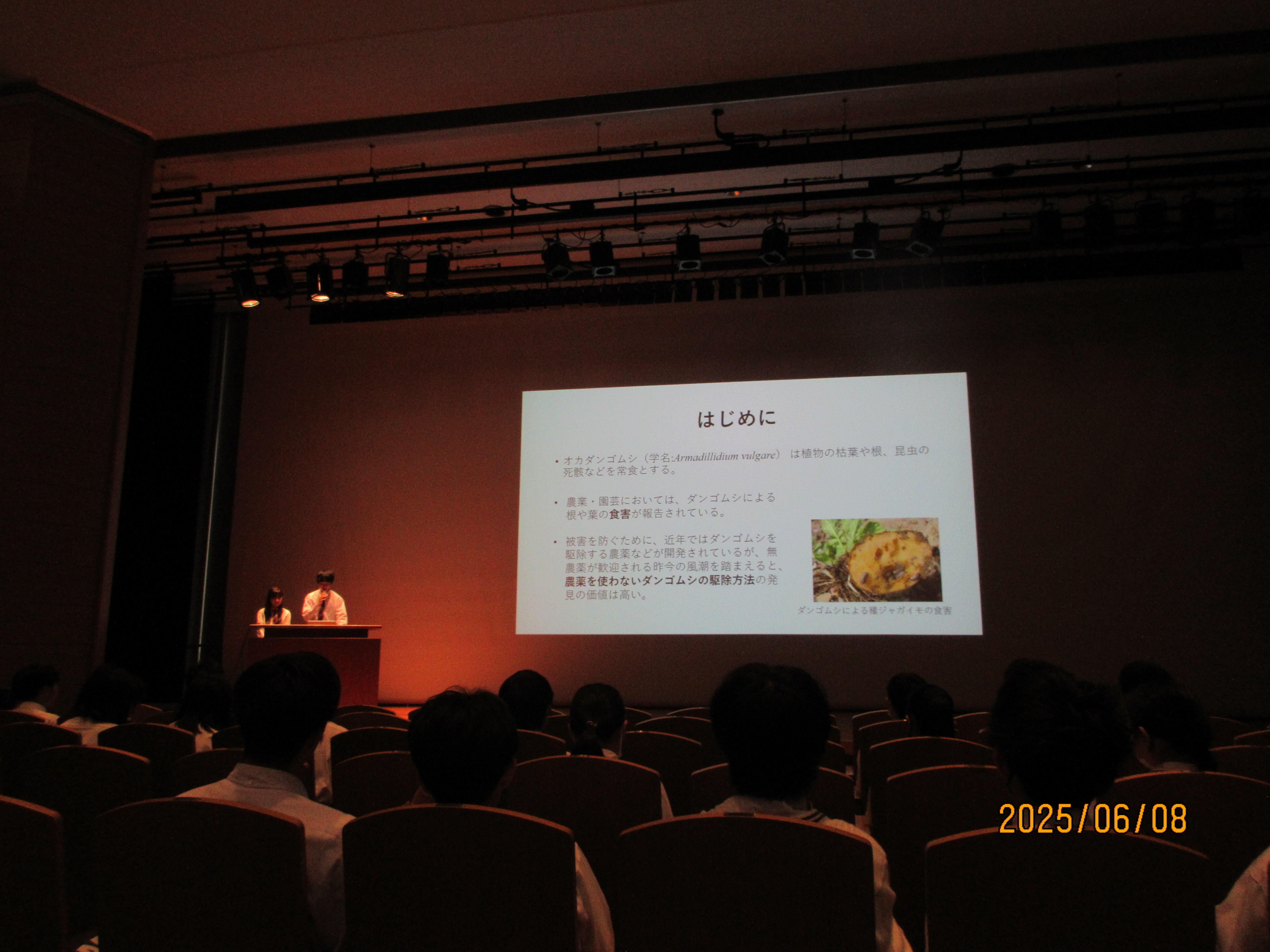 8月6日(水)~7日(木)の2日にわたり令和7年度スーパーサイエンスハイスクール生徒研究発表会が行われ、本校からは「ダンゴムシの好む香気成分の同定~彼らはビール愛好家~」の題名で3名が参加しました。惜しくも代表校には選出されませんでしたが、「着眼点が面白い」「身近にある生物を使って深く研究をしている」など多くの前向きな言葉をいただきました。この結果を出すまでに多くの試行錯誤をしながら、毎日のように実験を重ね、直前までポスターの修正をし、少しでもよい発表になるように努力していました。発表会に至るまでの取り組み姿勢は素晴らしいものがありました。