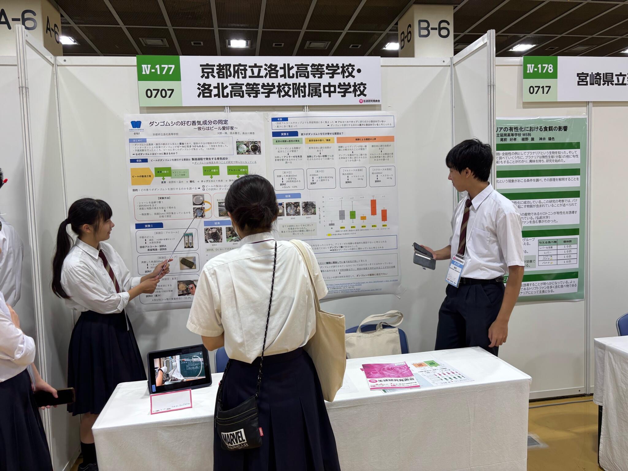 9月6日(土)にポートメッセなごや第2展示館で行われた「日本動物学会第96回名古屋大会 高校生ポスター発表」において、本校サイエンス科3年生3名が「ダンゴムシの好む香気成分の同定~彼らはビール愛好家~」と題して発表しました。ポスター発表では、1年間の研究の成果を高校生や現役の研究者の先生方の前で発表し、多くのアドバイスや感想などを頂きました。また、他の高校生の発表を見ることで、自分達の研究を深めるアイデアを得ることができました。