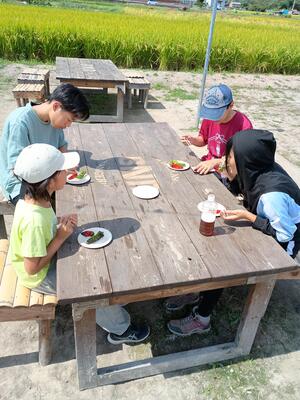 最後には緑色と赤色の万願寺とうがらしをみんなで食べ比べさせていただき、採れたての美味しさを実感しました♪