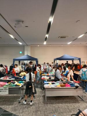 今年度も昨年度に引き続き、オープン文化祭にて校内で回収した洋服の配布を行いました。少しずつ認知いただいたからかはわかりませんが、昨年度の倍近くの200名の方にご来場いただき、回収した服の3/4近くを提供することができました。さらに今年度は子ども向けのおもちゃや絵本、食器も置いてみました。すると、子ども向けのおもちゃは開始20分ですべてなくなりました。新たなニーズの発見にもなりました。この活動を通しても、そのままだとゴミになっていたものが再度資源となり循環が回るだけでなく、服やモノの製造にかかるはずだった環境負荷も取り除くことができると考えています。今後はこの取り組みを地域の方とともに行い、学校を循環の拠点としたいと考えています。