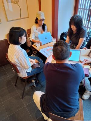 夕方には、「絵本カフェめばえ」にて、生徒たちが企業の方へ向けてプレゼンを行いました。実際に企業の方と打ち合わせをしている高校生は学校では見せないようなしっかりとした受け答えをしていて驚かされました!やはり生徒たちは高校の外へ出ることで大きく飛躍することを実感しています。