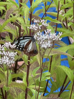 本校で育てていたフジバカマがついに開花し、そこにアサギマダラ(渡り蝶)がやってきました。