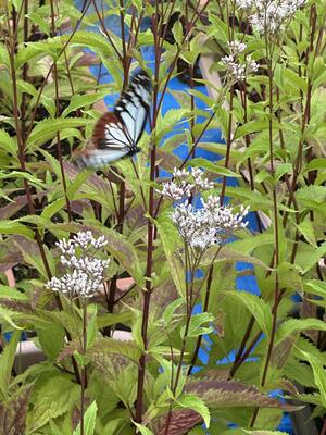 そんなフジバカマの様子を見に行くと、なんとも綺麗な蝶が舞っているではありませんか!調べてみると、「神秘の渡り蝶」と呼ばれるアサギマダラという蝶であることがわかりました。日本で唯一、長い距離を渡る蝶として知られ、海や山を越えて2,000km以上も旅をするそうです。はるばる洛西高校のフジバカマまでやってきてくれたので、嬉しくて嬉しくて何度も写真を撮ってしまいました。