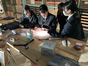 1月14日(水) 平日の放課後、ラクセーヌのリビングラボという場所で、芸大生が主催する古着リメイクのワークショップにLinks同好会のメンバーが参加しました。