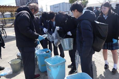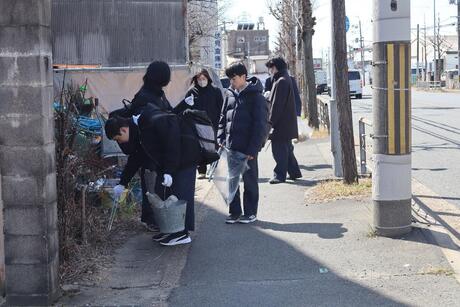 3月11日(水)、生徒会役員や部活動員は、地元の社会福祉法人レーベン横大路の職員の方と一緒に、今年度最後の共同清掃活動を行いました。