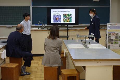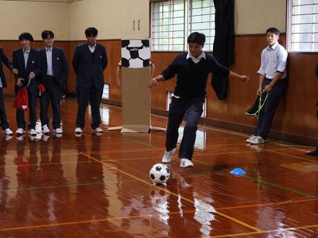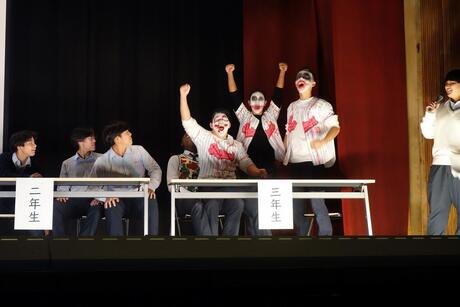 茶道部の作法体験、軽音楽部の「文化祭Live2025」、美術部、書道部、写真部の作品展示、サッカー部の「球蹴りランド」、硬式野球部の合唱、サイエンス同好会の「ビオトーププロジェクト」、図書委員会のスタンプラリーが行われたたほか、1年生が「総合的な探究の学習」の一環として、学年対抗早押しクイズを実施しました。この企画は全校生徒が大いに盛り上がりました。