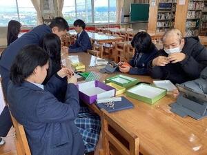 簡単そうですが、多くの種類のビーズがあるので、どのような色合いで、どの順番で並べていくのか、色々迷います。そして細いテグスを硬く結ぶのもコツがあって難しい作業です。自分の名前を入れたり推しの色で作ったりと、それぞれで楽しむ姿が見られました。また昼休みでは時間が足りず、放課後や次の日の昼休みなどに熱心に続きをする姿もありました。