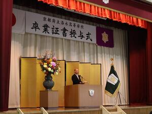 校長先生の式辞では「学び続ける意欲を持ち続けてほしい」「社会に貢献する心を大切にしてください」「感謝する姿勢を大切にしてほしい」の3つの餞の言葉が贈られました。