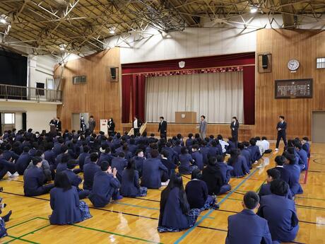 生徒指導部長 辻先生からは「交通安全と校内では自分の行動や言葉が周囲にどんな影響を与えるかを意識してください。」について話されました。