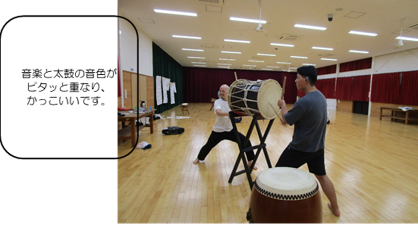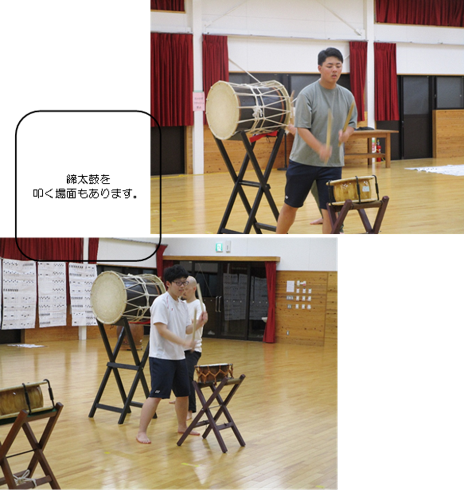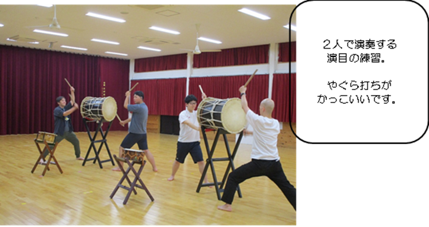 火曜日に実施している太鼓サークル。学習発表会前には、練習回数を増やし、火曜日以外にも練習をします。