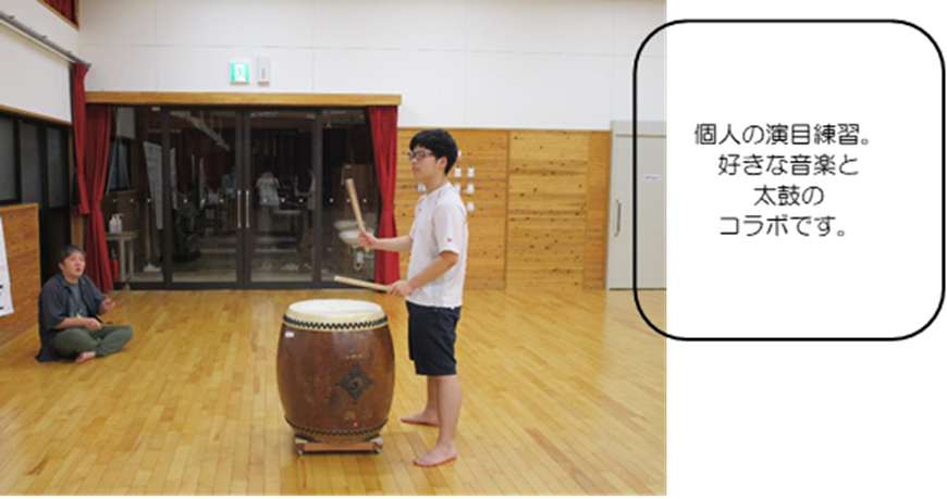 今年度の学習発表会では、太鼓サークルとして活動している高等部3年生2名で演奏する演目に加え、個々で演奏する演目もあり、個人練習にも取り組みました。