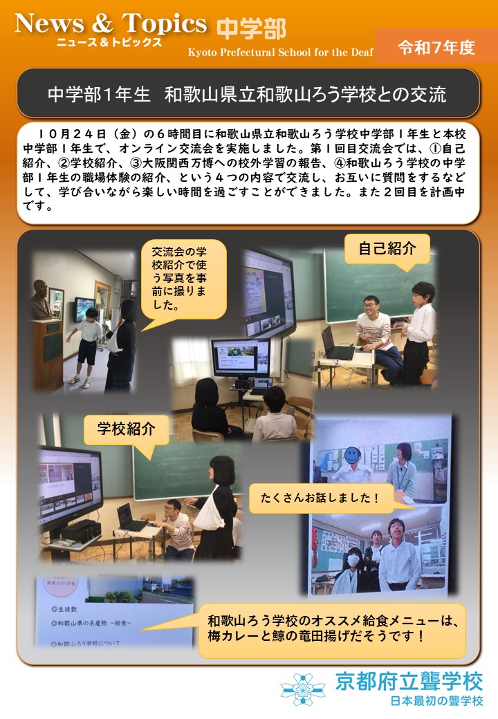 1024 中学部1年生 和歌山県立和歌山ろう学校との交流