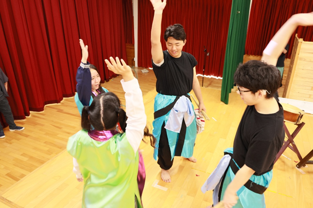 寄宿舎は午後一番の発表。昼休みに衣装に着替え、本番前に円陣を組み、「頑張ろう!」「おぉー!!」と気合を入れます。