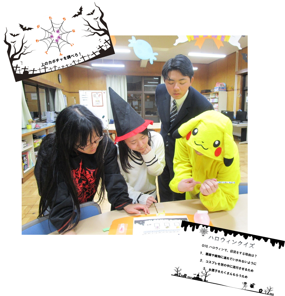 11月27日 寄宿舎日記 『徒然Diary(つれづれダイアリー)』HAPPY HALLOWEEN 寄宿舎 2025.11.27 『徒然Diary』 2025/11/27 HAPPY HALLOWEEN 10月29日(水) ハロウィンの取組を行いました。 食堂にかぼちゃやこうもり、キャンディー、おばけを飾り、風船で 「HAPPY HALLOWEEN」の文字を作り、雰囲気はバッチリ! 思い思いに仮装をして、ハロウィンクイズと謎解きにチャレンジ! みんなで協力しながらクイズを解き、謎解きをし、最後は記念撮影!楽しいひと時となりました☆ Post Views: 37