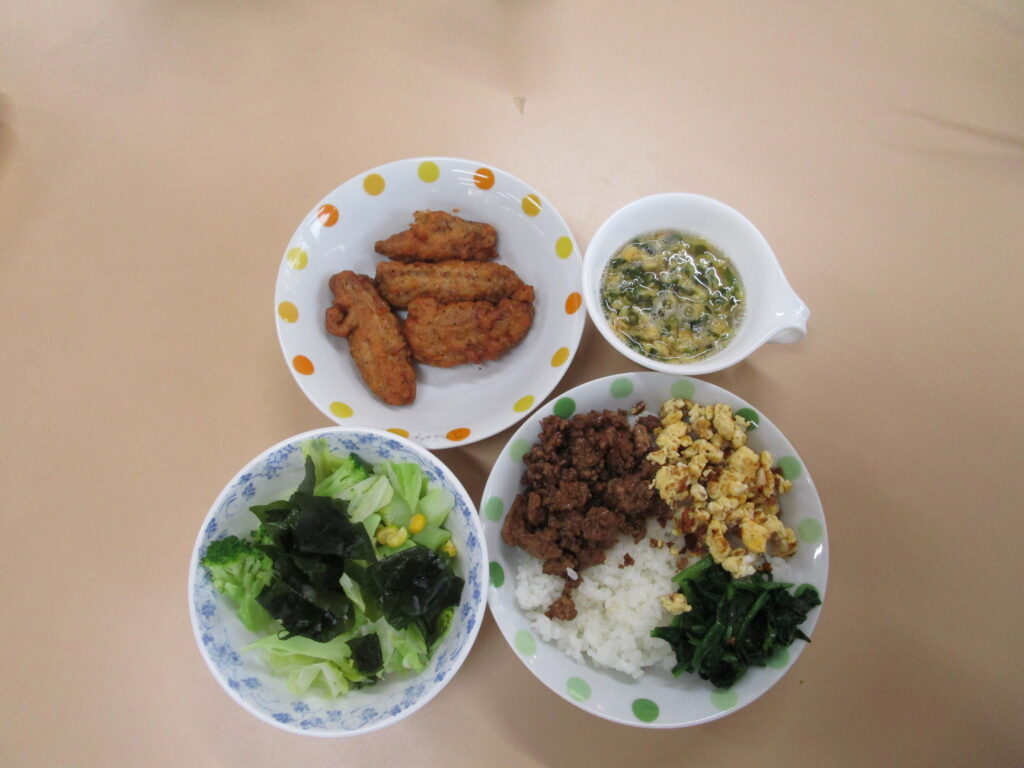 二人ともが好きな鳥そぼろの三食丼を作りました。「卵が少し焦げてしまった」と反省していましたが、味はばっちりでした。