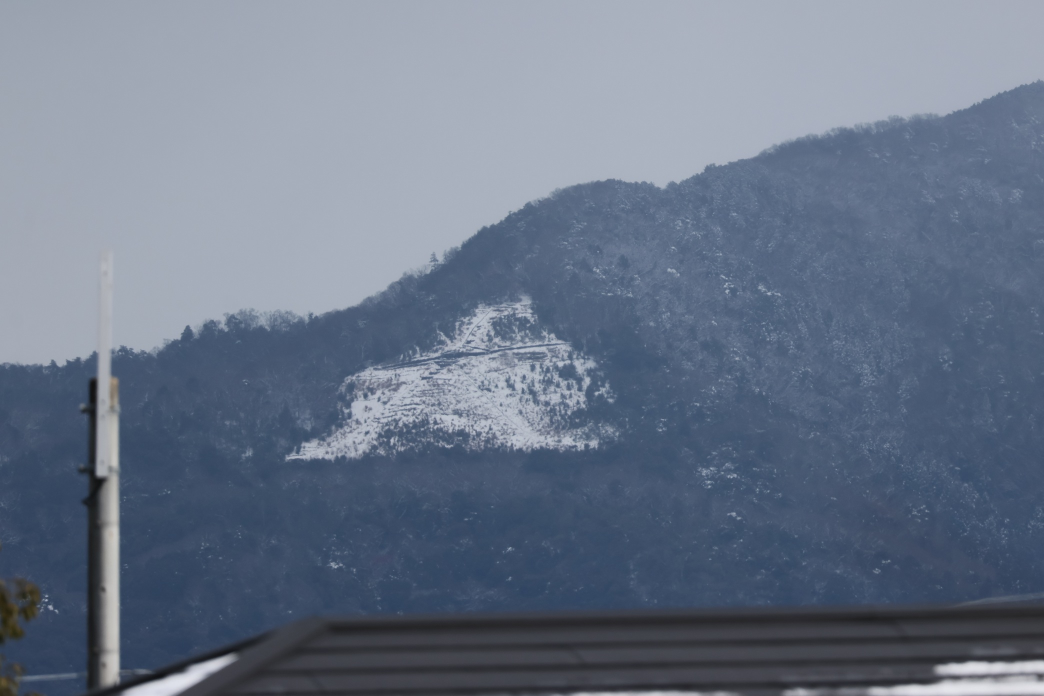 聾学校は京都市の北西に位置しており、寄宿舎からは東の山を望むことができます。京の東山の代表格と言えば如意ヶ嶽、俗に「大文字山」と呼ばれています。大文字山はお盆の送り火が全国的にも有名ですが、雪が積もる日の大文字山は山腹に白い三角形が浮かび上がります。その三角形をよーく見ると「大」の字を確認することができるのです。