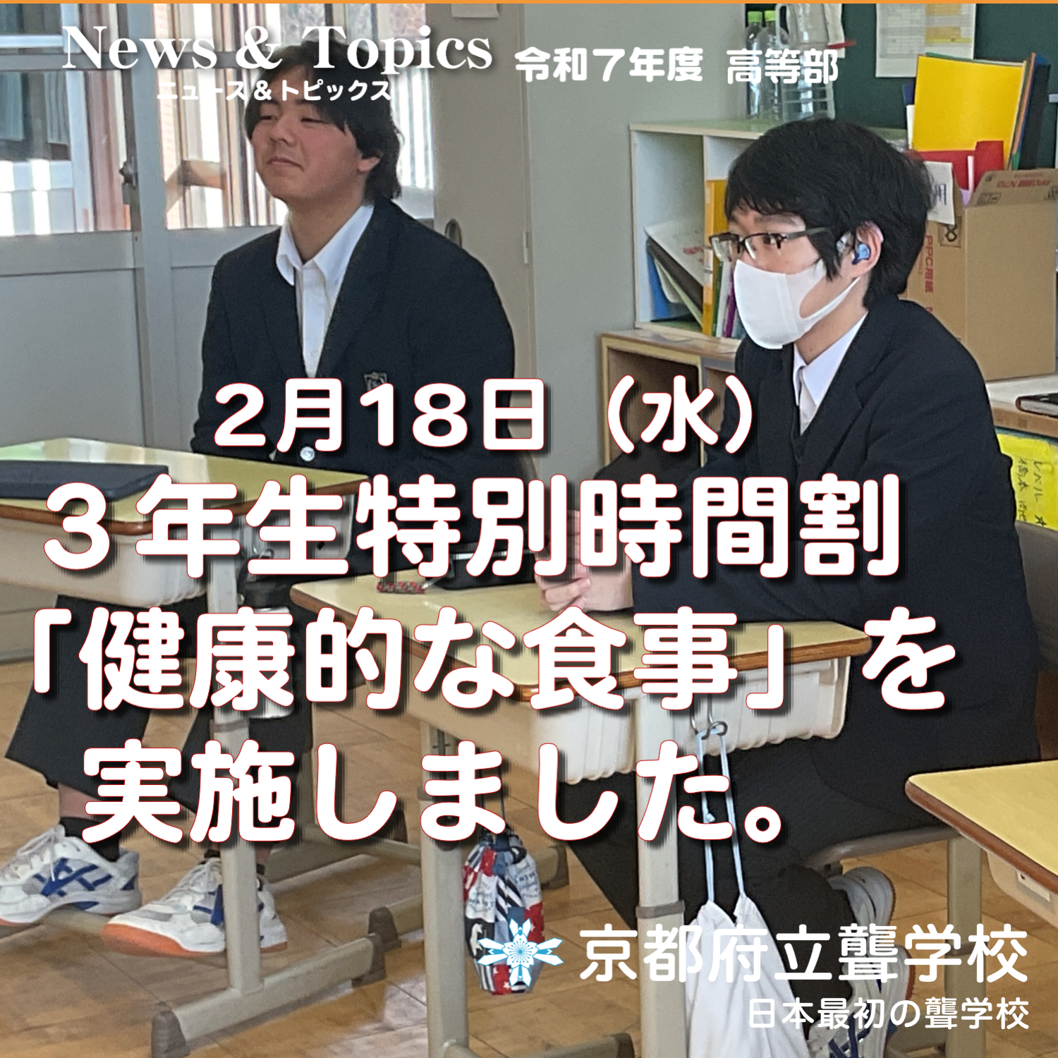 2月18日(水)2時間目に本校の栄養教諭の先生をお招きして、卒業後の食事についてどのようなことに注意をして献立を考えればよいかを教えていただきました。