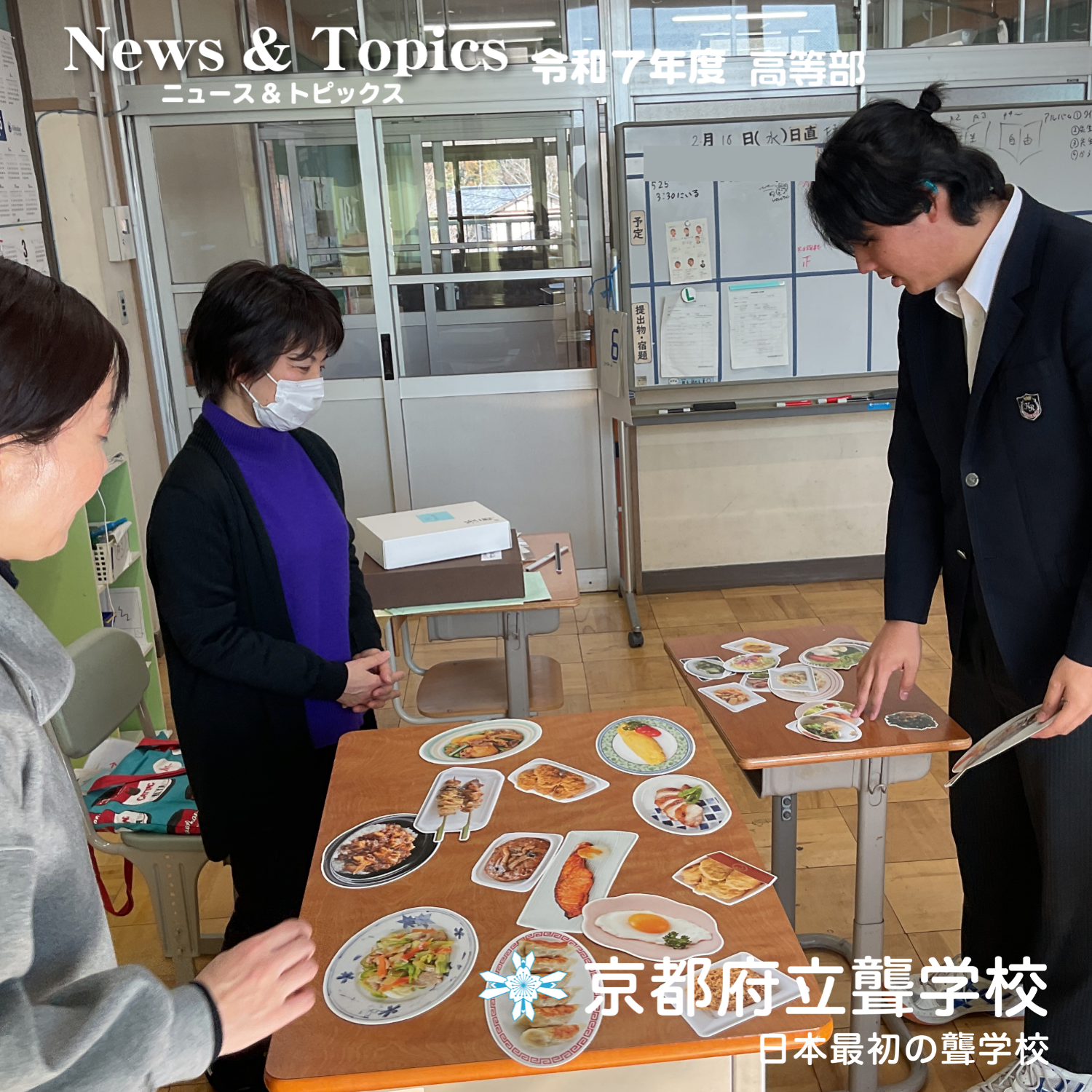 生徒たちは自分たちで考えた夜ご飯と摂取カロリーについて報告して、バランスの良い食事内容を考えることができました。卒業後もこの授業の中から学んだことを生かして、自分のご飯の献立を考えていってくれたらうれしいです。