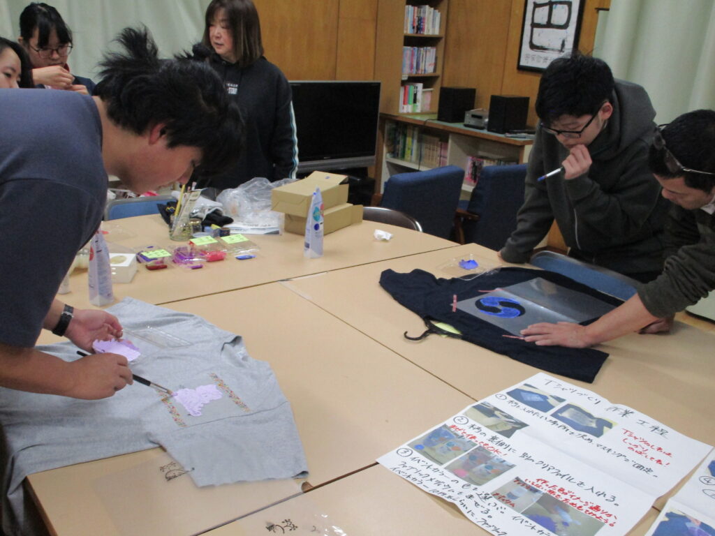3月5日 寄宿舎日記 『徒然Diary(つれづれダイアリー)』オリジナルTシャツ完成‼ 寄宿舎 2026.03.05 『徒然Diary』 2026/03/05 オリジナルTシャツ完成‼ オリジナルTシャツ作り、最後の作業です。 前回作ったステンシル(転写)用の型を使って、ステンシルしました。 型がずれないように、気を付けながらの作業です。 筆で“トントン”と色を乗せていくイメージで塗っていきます。しっかり色が乗るように、最低2回は重ね塗りします。 ジャーン! 4人全員完成しました! 後日、完成したTシャツを着て、みんなで記念撮影しました! Post Views: 25