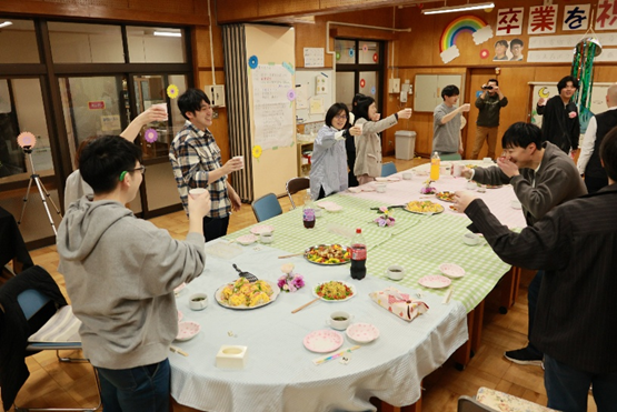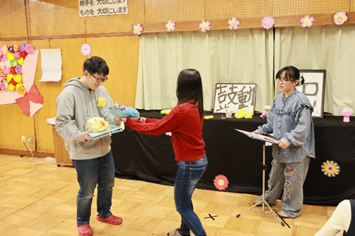 第1部ではくす玉割りと夕食会、第2部ではジェスチャーゲームや記念品贈呈、思い出ムービーに、卒業生や担任の先生の言葉など盛りだくさんでした。