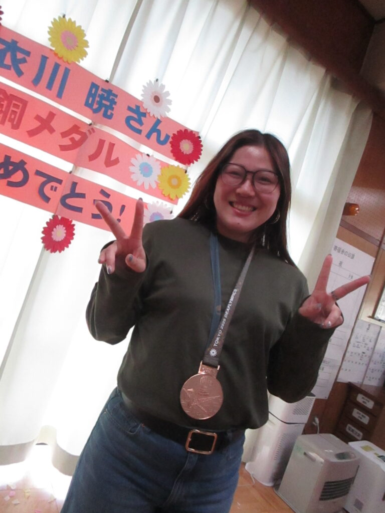 卒業生 衣川暁さん デフリンピック銅メダルおめでとう!