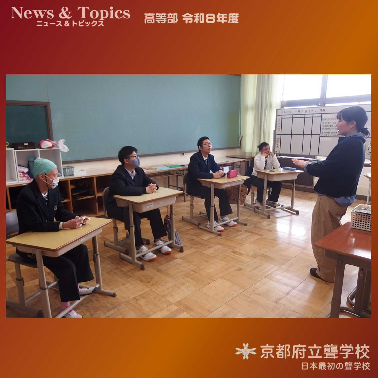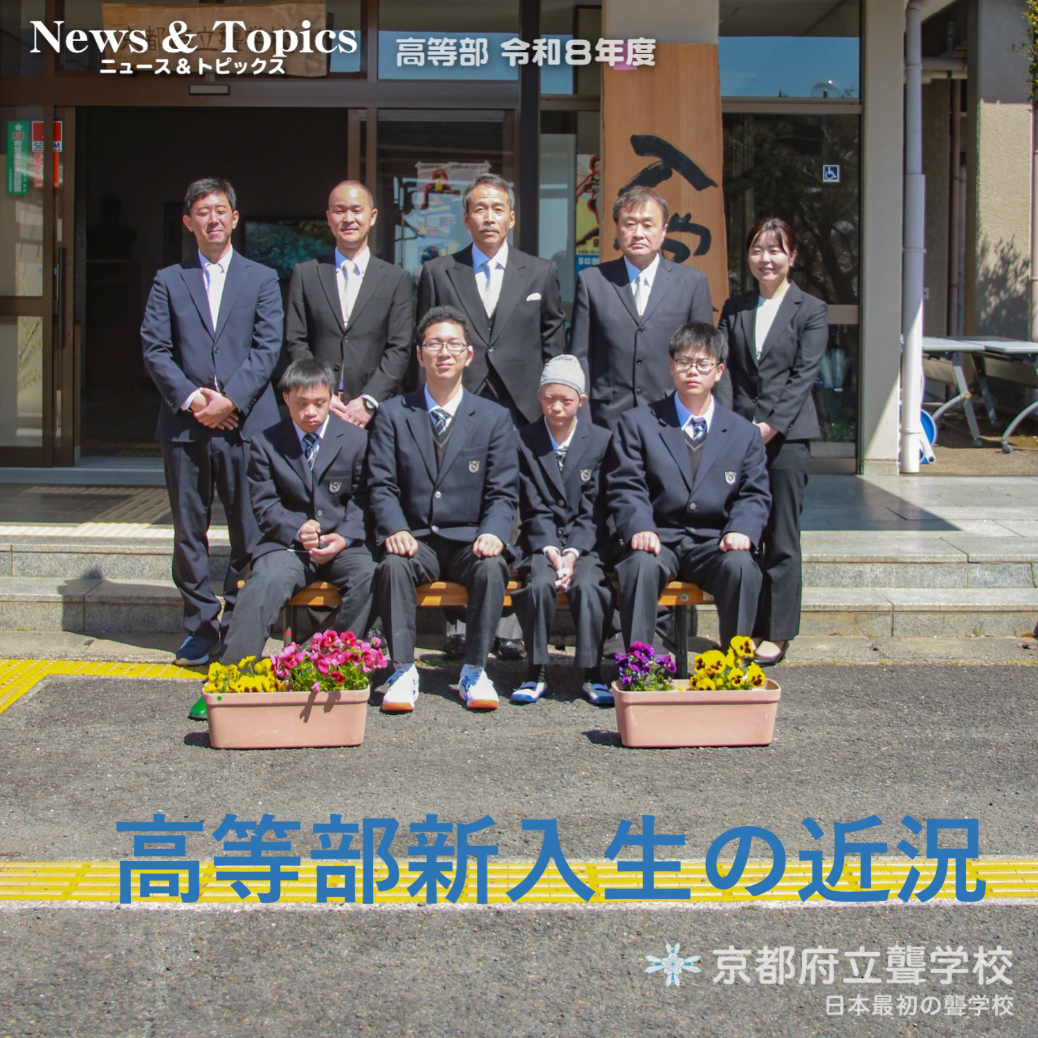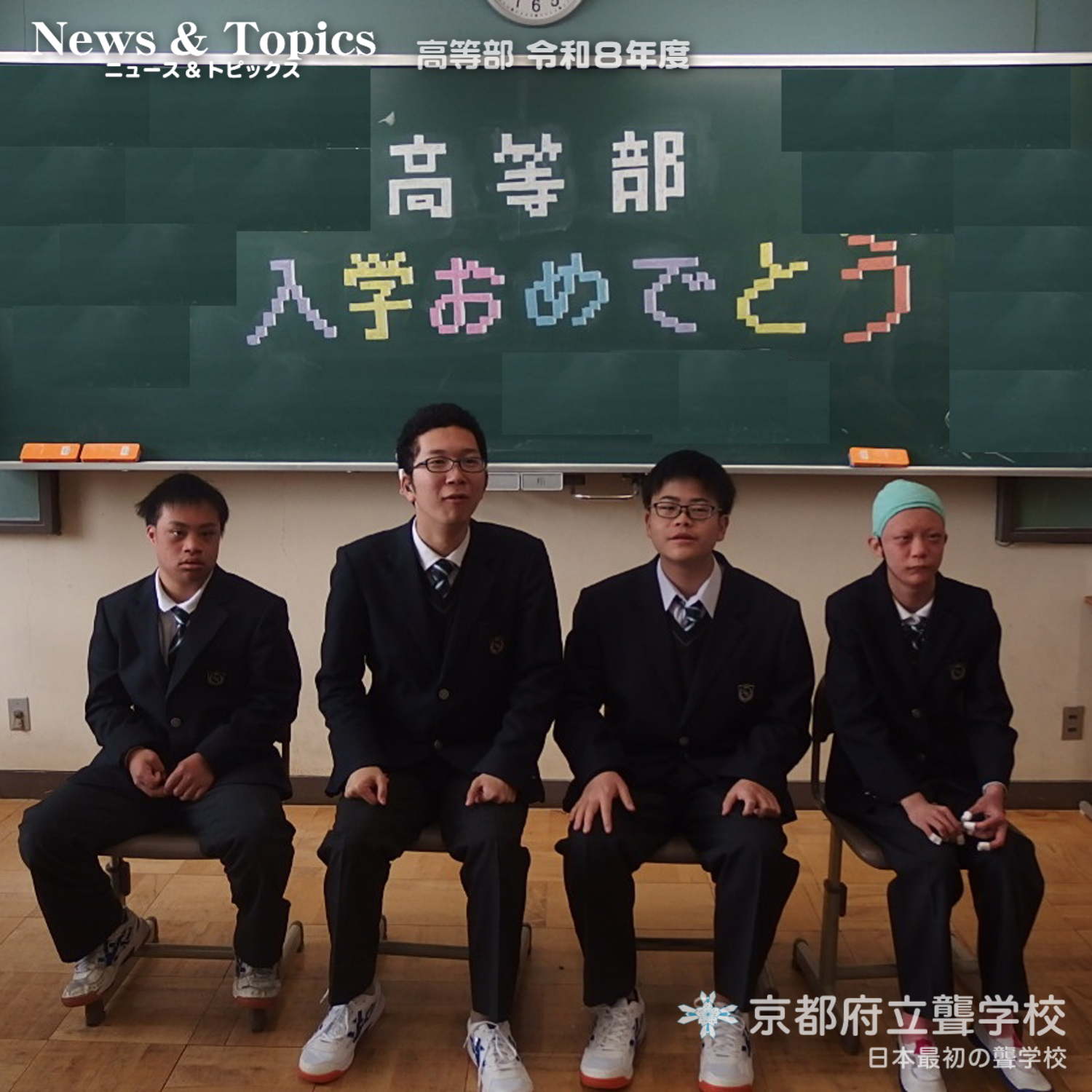 4月8日(水)、新1年生の入学式を行いました。新たに4名の生徒が高等部へ入学しました。校内の桜もきれいに咲き、新しいスタートを迎えるのにふさわしい一日となりました。