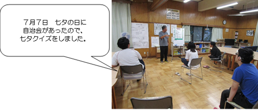 2学期最初の自治会では、夏休みの過ごしを舎生・先生みんなで交流。