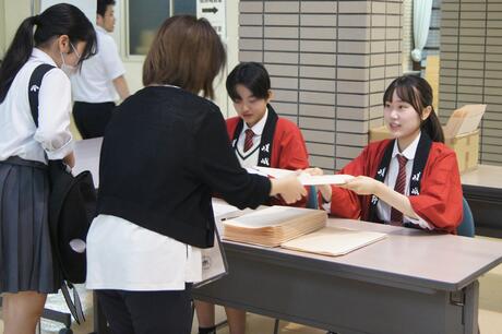 今回も、生徒の広報委員が、受付から、全体会司会、施設の説明に到るまで、大活躍してくれました。また、在校生から提供された受験期(中学3年生当時)のノートを展示したところ中学生・保護者に大変好評でした。