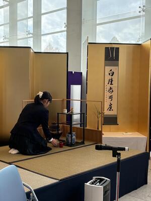 12月14日(日)に京都コンサートホールで開催された、全国高校生伝統文化フェスティバル~茶道フェスティバル~に本校茶道部が参加しました。3名の生徒が歓迎呈茶のスタッフを務め、ポスターセッションで日ごろの活動紹介をしました。