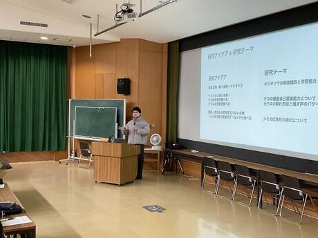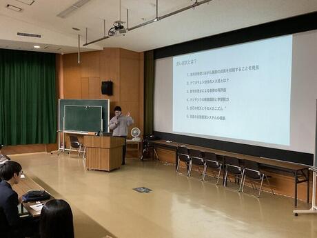 いま、まさに研究テーマに頭を悩ませている1年生にとっては、非常に元気づけられる先輩からの講義でした。