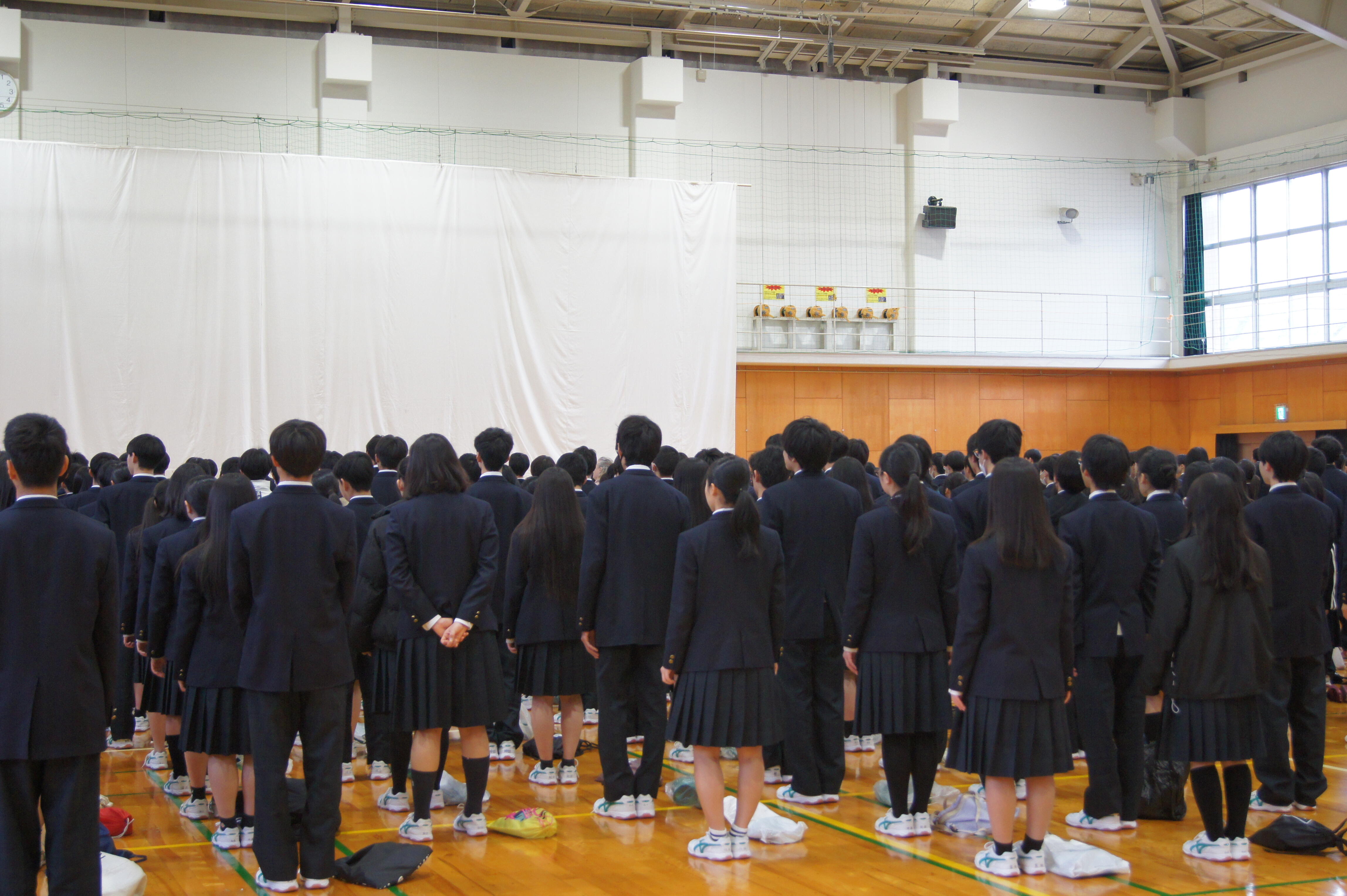 3月19日(木)体育館に1・2年生全員が集い、修了式を行いました。