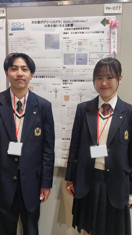 そして「共生菌がグリーンヒドラ(Hydra viridissima)の再生能に与える影響」がジュニアポスター発表最優秀賞を受賞しました。