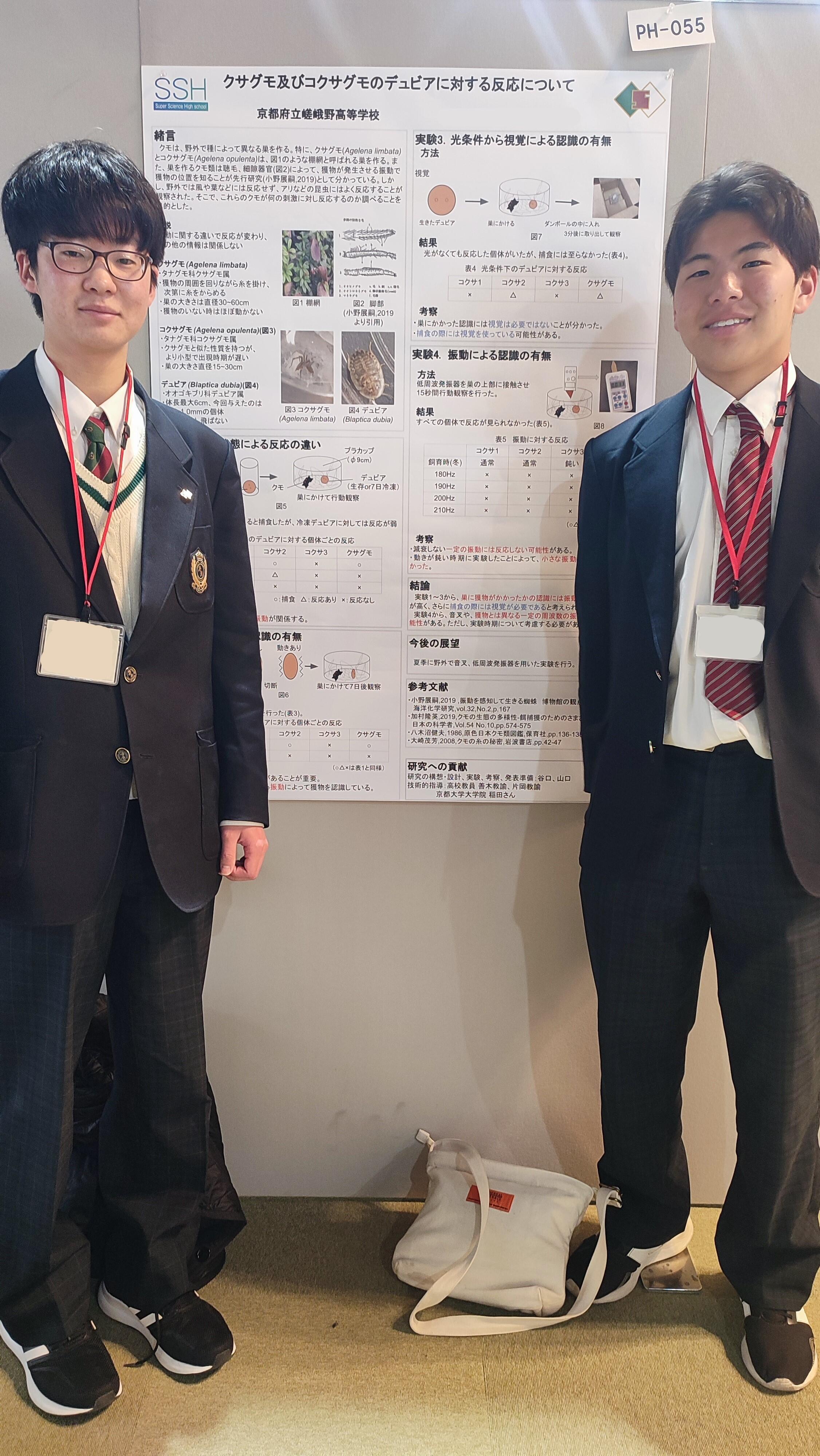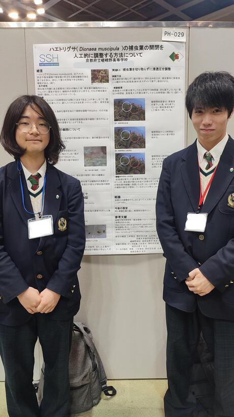 本研究は、本校の卒業生で京都大学大学院博士後期課程の稲田圭さんにも多くのアドバイスを頂いた研究です。卒業してからも力を貸してくださる卒業生のおかげで、在校生もさらに頑張れる、嵯峨野高校にはそんな環境があります。