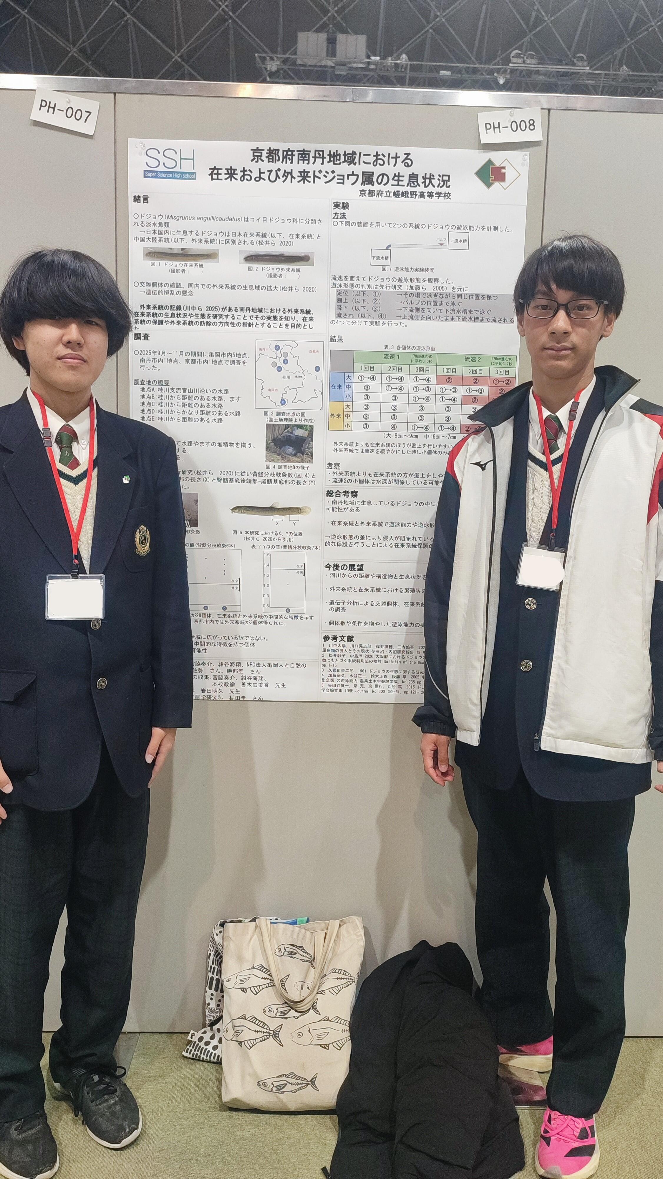 3月15日(日)、京都国際会館で実施されました、第73回日本生態学会ジュニアポスター発表に本校生徒8名が4つの演題でポスター発表を行いました。
