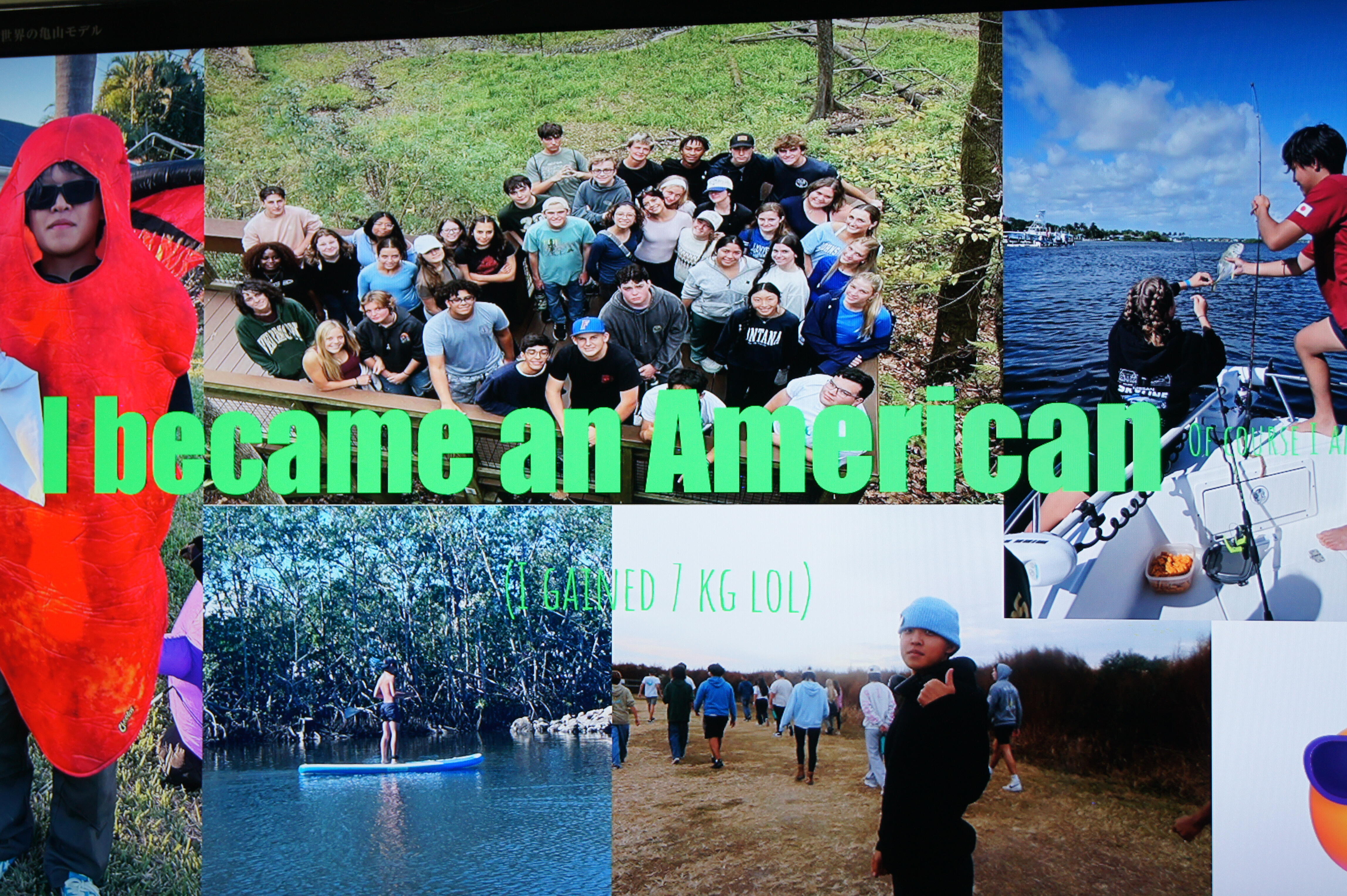 最後に、アメリカ・フロリダ中期留学から帰国した生徒の報告会を行いました。アメリカの高校生として過ごしたことで、多様な文化・言葉や慣習に触れ世界は広いと改めて感じたことや、未知の世界に飛び込むときに自分を信じることが大切であることなどを力強く語ってくれました。